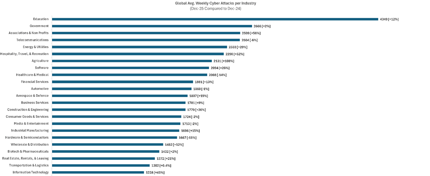 2025年12月のデータは、サイバー攻撃が単なる「増加」だけでなく、より「巧妙化」していることを示しており、ラテンアメリカでは前年比26%増と世界最大の伸びを見せるなど、地域ごとのリスクも高まっていることが伺える。